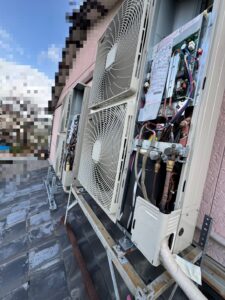 今回はエアコンの室外機が屋根の上に乗っている 特殊なケースの引揚をしましたので、ブログにさせて頂きます。
