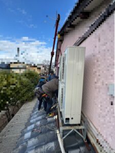 室外機を持って運ぶと瓦が割れてしまう可能性も あります。